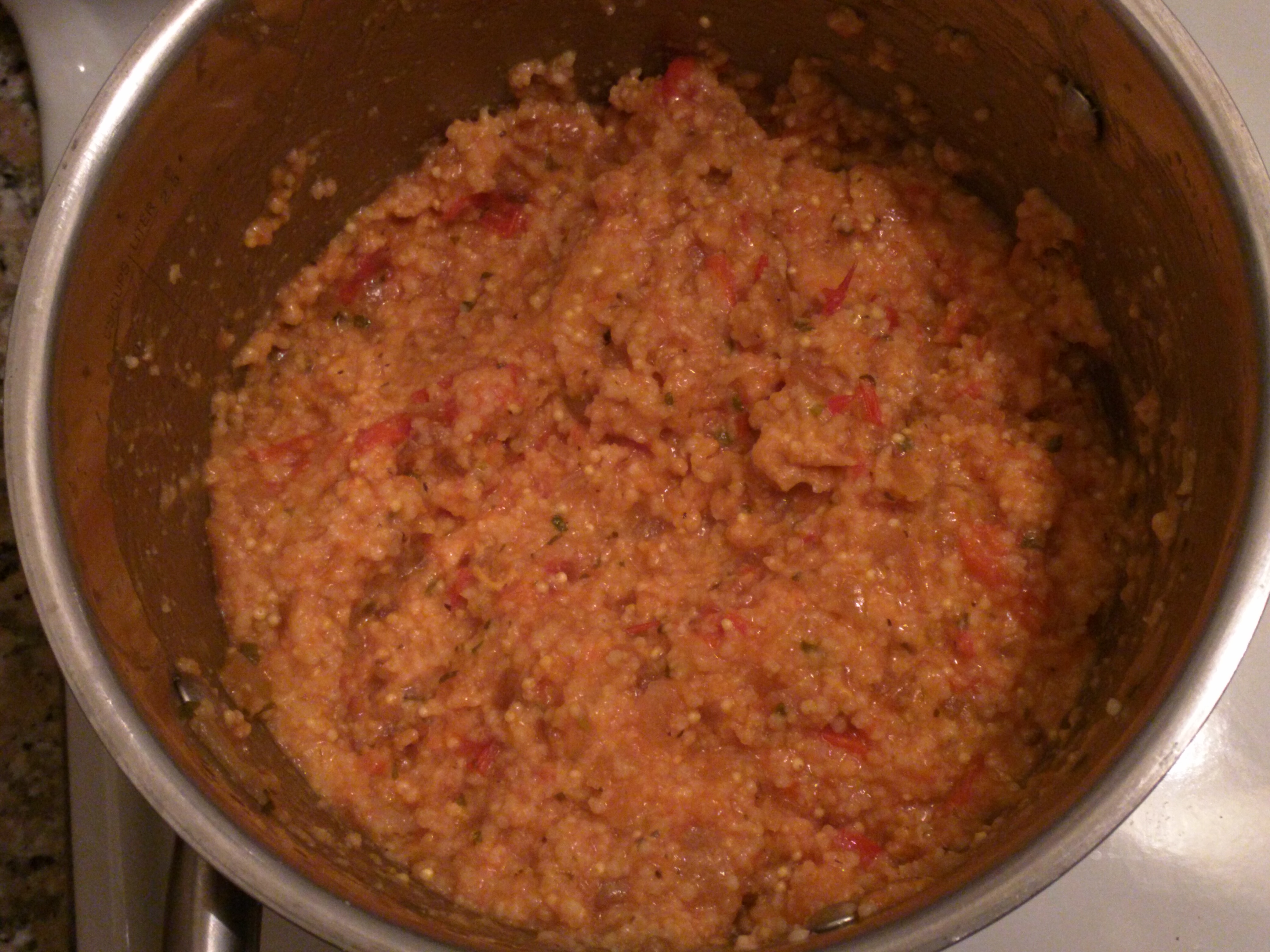 boiling, turn the heat down to the lowest level and cover the pot. Leave the millet on the lowest flame until the millet absorbed all the water (add more if necessary for a creamier texture).